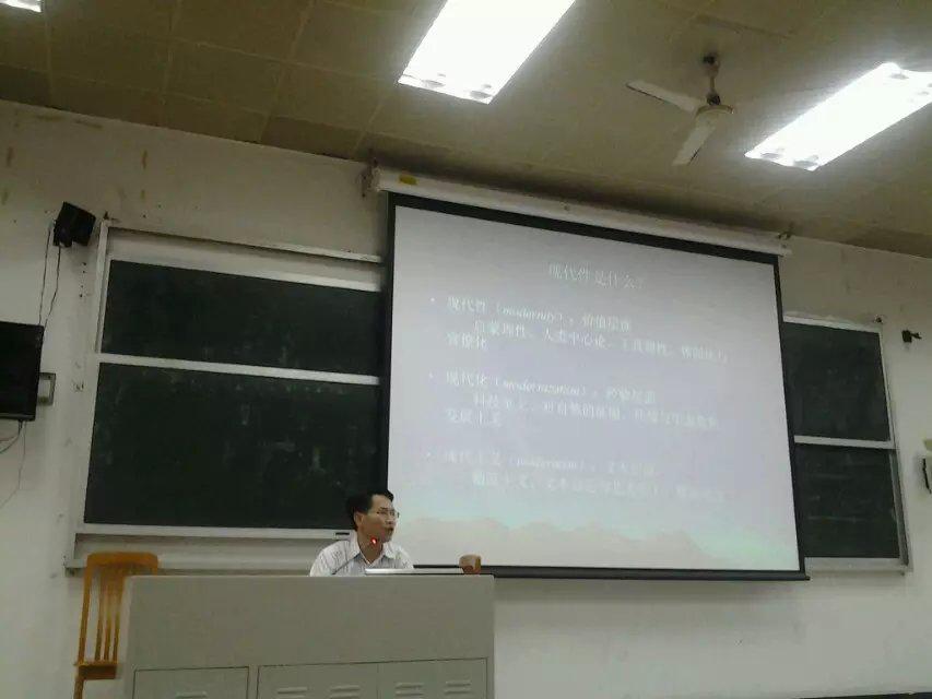 接着,伍老师分别从价值层面、经验层面和文本层面来向我们具体阐释“现代性是什么”。在经验层面上,高度发达的物质文明特别是技术文明的发展使现代国家实现了现代化,但是这种现代化却对现代人造成了一种压迫,因此,现代化从一个“美梦”变成了一个“噩梦”,变成了一个喜忧参半的社会。另一方面,全球化的发展也给社会带来了巨大的变革。比如环境问题,绝非一国一区的问题,而各个国家要解决生态问题,就必须变成一个整体。在这些社会变革的基础上,西方相应的思想层面也发生了转折。比如启蒙主义的兴起,倡导理性,提出人类中心论,发展到极端,就会产生希特勒这样的人物。更不必说现代化所带来的体制化和官僚化的问题了。这些在价值层面就体现为现代性,而在文本层面,则体现为现代主义。