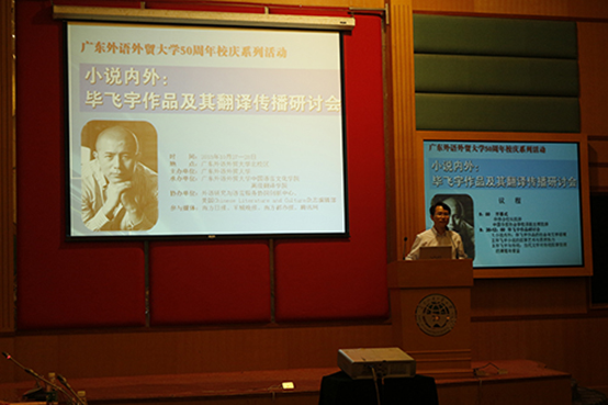 暨南大学中文系的蒋述卓教授从中国当代文学的发展历史入手,用语言描绘了一幅涵盖中国当代文学的各个时间段特点的全景图。通过与文学发展的历史对照,蒋教授指出,毕飞宇先生较大的特点是传承和发展了传统文学。他相信会中国六十年代作家会越来越多地走向世界文学的舞台。