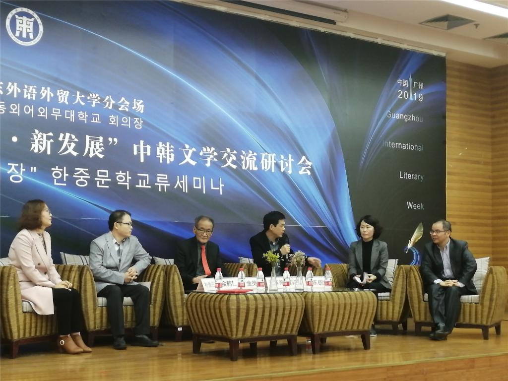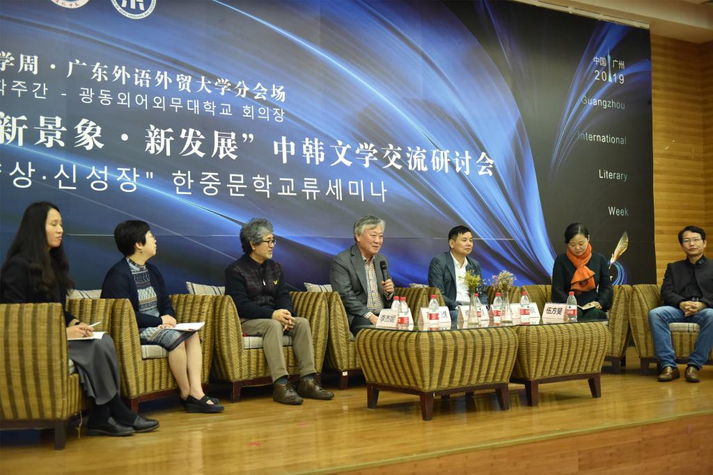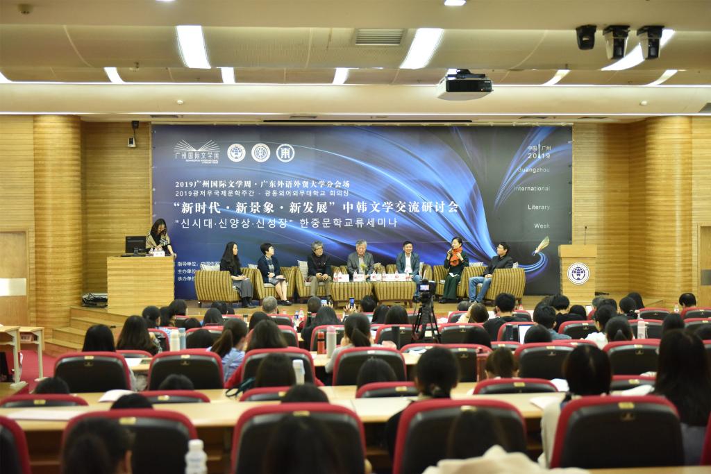 2019年12月16日,“2019年广州国际文学周”——“新时代·新景象·新发展”中韩文学交流研讨会在太阳城集团北校区图书馆报告厅举办。此次研讨会由中国作家协会指导,中共广州市委宣传部、广东省作家协会、广州市文联主办,太阳城集团太阳城集团、东语公司和创意写作中心具体承办,围绕“新时代以来中韩文学发展的新现象、新特征和新趋势”和“新时代以来中韩文学作品互译出版的现状和展望”两个议题展开了热烈的讨论。出席此次研讨会的嘉宾有来自中韩两方的作家、诗人、学者等,包括韩国著名作家李文烈、高炯烈,著名诗人罗喜德、李杰妮,著名文学评论家洪廷善,资深出版人梁元锡,中国著名诗人杨克、作家周晓枫、庞贝、方舟、唐成茂、翻译家金鹤哲、学者李斌、刘志强、伍方斐、陈恩维、金英姬、朴香兰等,由太阳城集团经理李斌、创意写作中心执行主任朱志刚、汉语言文学系主任林炜娜分别主持。