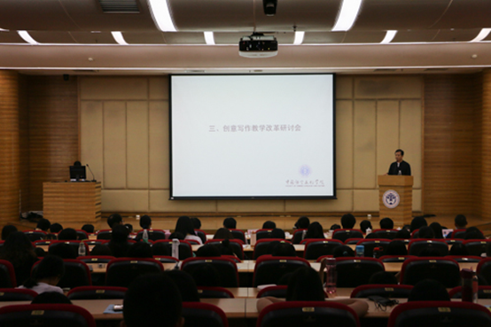 魏慧斌作汉语言文学(创意写作)专业办学情况报告。他从四点总结了创意写作专业办学四年以来的改革工作:培养和引进团队;修订人才培养方案;优化课程设置;改革课堂教学模式和课程考核、毕业论文方式,强化课外实践教学。