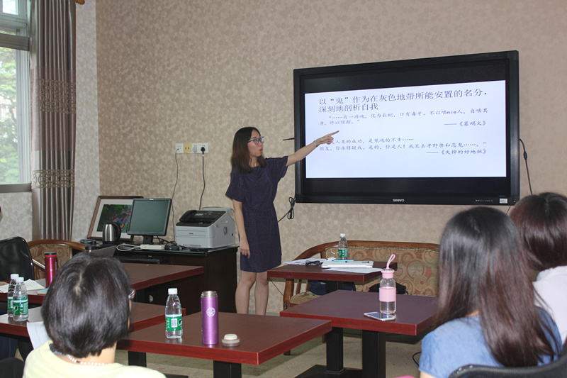 在张莹莹进行了50分钟的报告之后,三位老师针对其报告进行了提问和评价。陈咏芹教授认为,该报告的主题起得非常好,研究鲁迅的“鬼”的书写,也是一次非常有勇气的尝试。但是在鲁迅客观地写“鬼”以及用“鬼”作为抽象意义代表他物,这两点应该有更加详细的区分,会使研究显得更严谨。随后,张宁教授发问报告人,认为鲁迅的“鬼”究竟是什么?他认为,鲁迅的“鬼”不会让鲁迅掉到了精神的深渊的同时,也不会有彻底的光明。这一点,是所有研究鲁迅的人在研究的时候,应该注意的问题。另外,用“光明”和“黑暗”两个词语作对比,可能未够合适。