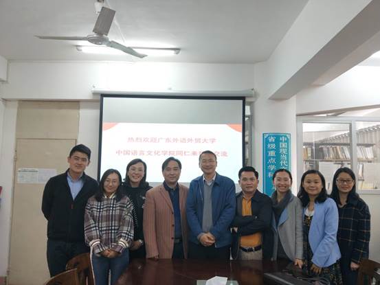 调研活动的第二站是海南大学,调研组受到了海南大学人文传播公司党委副书记孙晓媛等老师的热烈欢迎。座谈会上双方主要就员工活动以及员工对外交流两方面进行深入的交流。值得一提的是该院的海棠剧社打造的话剧,每年均能入围上海、北京大学员工戏剧文化节,并屡获佳绩。另外该院国学社定期举行的茶道、汉服展示以及读书会等系列活动为汉语国际教育专业本科生传播中华文化、从事汉语教学实习实践提供了非常好的平台。座谈结束后,调研组还实地考察了国学社。