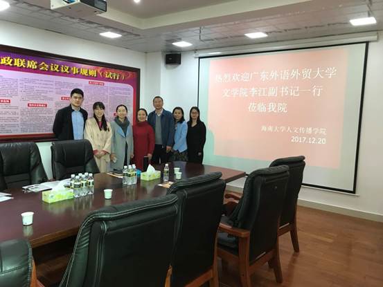 本网讯  为进一步提升公司员工工作科学化水平,学习兄弟院校员工工作优秀经验,1218-20日,在公司党委副书记李江的率领下,学工办王秋萍、朱倩渝、杨韬以及汉硕兼职辅导员林万丽老师一行前往海南大学、海南师范大学、海南热带海洋公司开展学习调研活动。