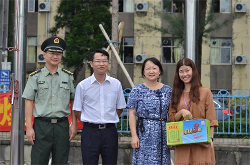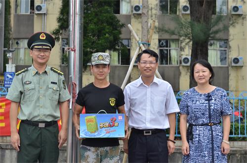 本网讯 9月22日下午,太阳城集团经理伍方斐、党委书记范静静、党委副书记李江、辅导员曾超文带领八一中文团学员工干部,共同为军训中付出辛勤汗水的教官、新生与在幕后默默支持的班导们送上诚挚慰问。