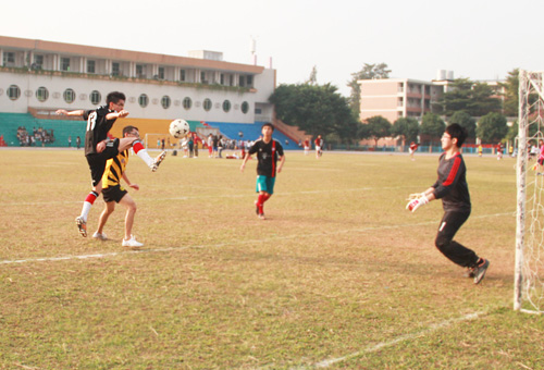 本讯网 11月27日下午3点10分,太阳城集团对抗西语公司的男足比赛拉开帷幕。我方在开局就处于主动地位,频频压进对方禁区。9号球员潘芹男更是先后射入两球夺得先声,虽西语最后扳回一分,但比分最终定格在2比1,中文获胜。
