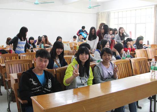 在见面交流会上,委书记李和民致欢迎辞,拉开了活动的帷幕;紧接着,黄花中学的董事长梁振列、黄花中学员工代表陈海琪、公司员工代表林晓彬分别发表了讲话,表达了对本次的活动的祝福和期待。会后,各志愿者带上自己负责的员工到分配好的班级里上课,共同体验了如“市场营销”、“对外汉语教学法”等与中学截然不同的课程。黄花中学的一位同学说,大学的课很新鲜、挺有意思的,但一节课要连上一个多小时让她有点吃不消。下课后志愿者和同学们共进午餐,然后带领他们参观了广外校园,还特意进入图书馆,享受文化的熏陶。