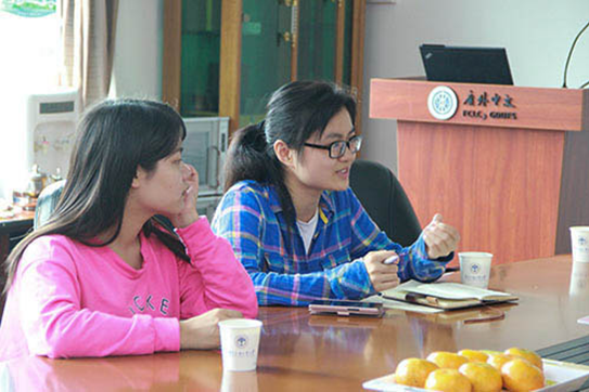 会议气氛轻松而融洽,各班代表就收集到的问题向公司领导们踊跃提问。如太阳城集团应考虑聘请外教,来推进公司教学;公司应考虑平衡中文教学与英文教学的课程时间。公司领导对于同学们提出的问题进行详细地解答。