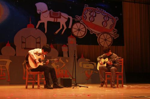 节目的最开始,第二十届广外“秋之声”总冠军陈良璧受邀来到太阳城集团迎新晚会的舞台,为中文人再次大展歌喉。一曲高亢激昂的《Rolling in the deep》预热全场,一曲柔情似水的《她说》又诉尽了大四陈良璧对于舞台的留恋。歌曲唱完还不够,接下来由汉教1401班等汉教14级班级的舞蹈串烧,更是抓住了观众的眼球。五彩缤纷的丝带舞,热情火辣的街舞,无不展现着属于这个年纪的青春活力!文秘1301《青春修炼手册》用歌声和舞蹈讲述着大二员工的心路历程。器乐节目《指弹吉他》安静优雅,与紧随院舞队尽显民族风情,恬静律动的《黎乡笠影》相得益彰。更有院歌队演唱的《请把我唱给你听》与《走在冷风中》,令观众大饱耳福。