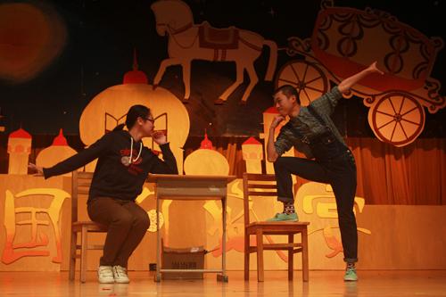 文秘1402班新编的《白雪公主》颠覆传统,男同学扮演的公主、女同学扮演的王子、高个子扮演的小矮人,赢得阵阵喝彩。院话剧队带来的《我play》以小提琴和吉他伴奏的合唱清新开场,随后却画风一转,进入了诙谐的“恋爱课堂”,引起全场笑声不断。在文秘1201集舞蹈歌曲话剧于一身的《我们要上迎新晚会》之后,文秘1202的话剧《使徒文秘2》,更是改编当红粤语剧集《使徒行者》,展现另类的校园卧底话剧,恋爱、卧底、学习的纠缠使主人公最后得出了 “且学且珍惜”的感悟。而压轴舞台剧《奶奶带我飞飞飞》则以回忆和现实穿插的方式展现了文秘1302班的热情与团结。