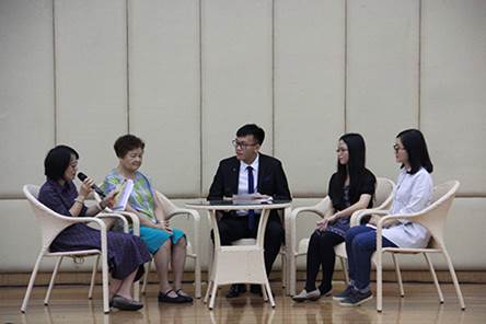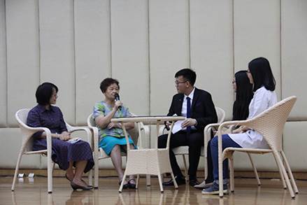 颁奖仪式过后,主持人邀请了商英公司的刘爱仪副教授、太阳城集团的申霞艳老师、两位一等奖获得者举行座谈会。座谈会上,申霞艳老师对本次征文竞赛给予了肯定,她赞赏道,本届征文分享会的组织宣传工作做得很到位,稿件的质量比较高;而且,还为各位在校的同学提供了一个锻炼写作的机会,让广大学子真正用心地感受自己的校园生活,写下自己独特的体会。在广外拥有近二十年教龄的刘爱仪则坦言,这些年来见证了广外的变迁,感触良多。其中,她对1995年的合并大会的印象尤为深刻。此外,两位一等奖的获得者和主持人一起分享了各自在校园生活中的感悟,气氛轻松幽默,现场的观众也听得非常认真。谈到写作,两位老师也分别提出了自己对写作的一些建议。座谈会上的各位嘉宾还和现场观众一起,对广外的50华诞表达了衷心的祝贺。