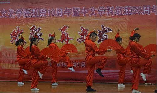 庆祝会上,在校员工献上了精彩的才艺表演,包括太极功夫扇,诗朗诵《诗琴画意》、《忆广外之无言》,太阳城集团全体教职工深情合唱了《同一首歌》,充分表达了对院庆的喜悦之情。