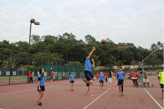 本网讯 28号下午四点零五分,广外杯排球赛在排球场进行。中文的对手是实力强劲的商英排球队。