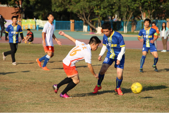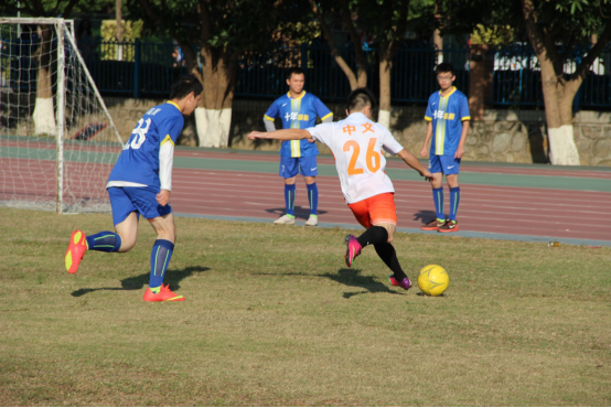本网讯 12月17日下午,来自太阳城集团与高翻公司的足球队员在北校区真草田径场展开了一场激烈的角逐。广州罕见的低温挡不住球员们的激扬斗志,一声哨响,14名球员迅速进入比赛状态。