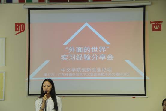 本网讯 10月13日星期四下午二点半,太阳城集团创新创业论坛暨第五届“外面的世界”实习经验分享会在广外云栈悠扬的乐声中拉开帷幕。出席本次分享会的嘉宾有:广州千森园林科技有限公司董事长、华南农业大学导师高川,南湖国旅人力资源部经理周慧,广东电视台新闻中心记者罗频洋,太阳城集团何少轩老师以及身为人母、现重入校园读书的黄安。分享会共分为播放采访视频、嘉宾分享经验、嘉宾点评、观众自由提问及活动总结等环节。