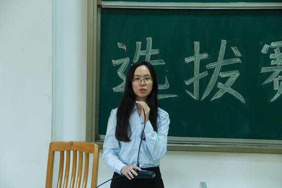 接下来选手郑昕再次上场,担任张誉文作品《两岸典型对外汉语教材对比分析》的代讲人。本份调研报告以“汉语热”作为切入点,结合选手自身在台湾当交换生的经验,分析了两岸教学的特点与区别,起到了反映教材发展方向和提出指导性建议的作用。