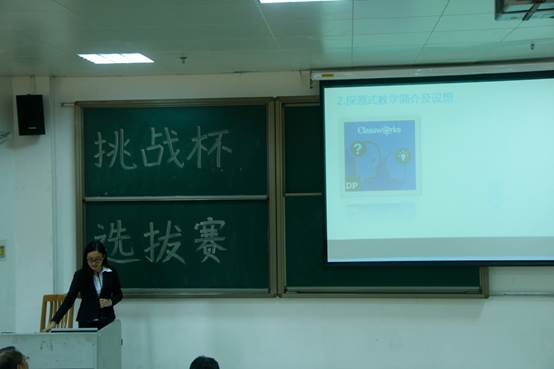 接下来上场的郑昕首先向我们介绍了“探源式”教学法,并阐述她与队友吴雨辰通过运用实证调查和访谈等方法,对“探源式”教学法在中国TEFL中的应用前景进行调查。段莉老师对其调研结果表示赞赏,并在问卷设置上提供指导。