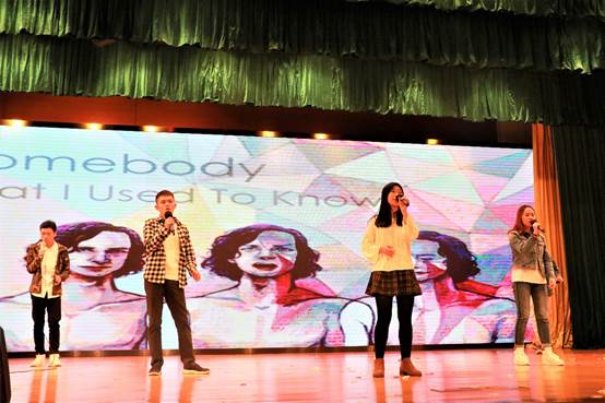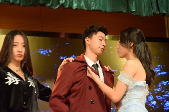 文管1501的小品《逃学威龙》进一步助推气氛。贴近老员工活的主题,爆笑的台词,夸张的演技让人捧腹大笑;校歌队带来的音乐剧《给岁月的歌》则满满都是情怀的味道,三首不同时代的歌曲,三段美丽的故事,让观众重回老歌中的旧时光;而绿洲音乐协会也用音乐剧的形式讲述了两位大学员工之间的故事,让人从故事中看到曾经羞涩曾经年轻的自己;1704新生带来的《only you》歌曲串烧展现了大学新生的活力;汉教1601和汉创1602联合演绎的小品《小美好》把观众带回童年经典。