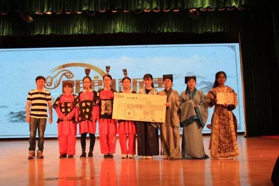 太阳城集团云山话剧社指导教师胡颖华为获奖队伍颁发优秀奖