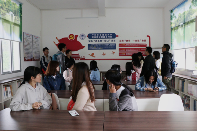 党建工作坊不仅是村里的图书馆,还是孩子们的自习室。工作坊中的书籍大多来自广外图书馆和社会人士的捐赠。