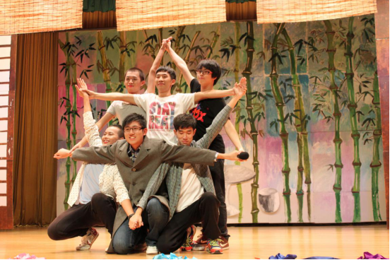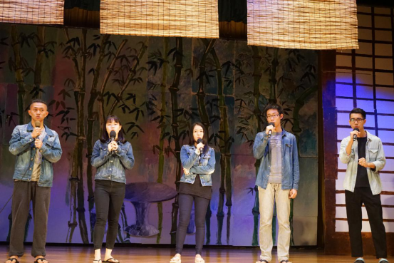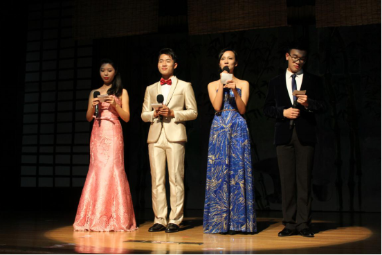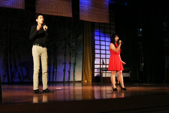 下半场一开始则是由中文歌队带来歌曲串烧。一曲感伤的《喜帖街》让观众为之动容,《眼色》更是唱得跌宕起伏,让观众大饱耳福。歌声刚刚散去,凤鸣云山话剧社带着《今夜women说相声》登台了。这部话剧彰显了中文人的特色风采,它出色的剧本情节以及演员精湛的演技,引得台下观众连连拍手叫好。随后,校舞队展现出优美的舞姿,具有民族风情的《索玛花开》为观众呈现了一场视觉盛宴。