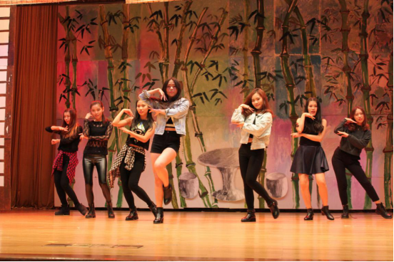 汉教1302一班员工身穿白衬衫、黑裙子或黑裤子,一派公司风打扮。他们或坐或站,有的拿着杯子,用手拍打、用杯子敲击桌面,有的弹吉他、吹哨子为《When I’m gone》伴奏。整齐地拍打声配上清新的嗓音好似把人带进了一段回忆,他们用歌声代表心声,唱出了自我。中文舞队带来的《Ah Yeah》征服了在场观众们的心,一众美女劲歌热舞,妖娆动人的舞姿动感十足,引起了台下一片欢呼声,牢牢地抓住了观众的视线。