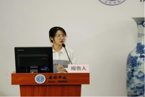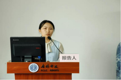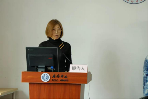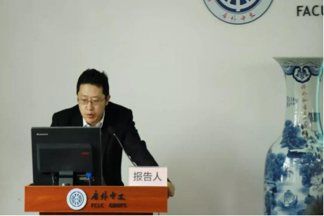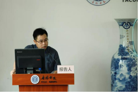 其后,杜卫华老师带来“《生死疲劳》德译本中熟语翻译与中国文化传播”。他重点举例介绍转译的字译、意译、省略的方式,得出在翻译过程中要综合使用各种方式的结论。
