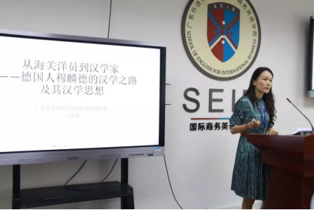 卢铭君老师发表了题为《从海关洋员到汉学家——德国人穆麟德的汉学之路及其汉学思想》的报告。介绍完穆麟德的人生和学术经历后,卢铭君老师引用其汉学著述,对其汉学思想进行梳理,发现穆麟德的汉学研究中长短处并存。卢铭君老师还概括归纳了穆麟德对提高中国文学在世界文学中的地位和中国文学教材的功绩,获得高超老师的充分肯定。