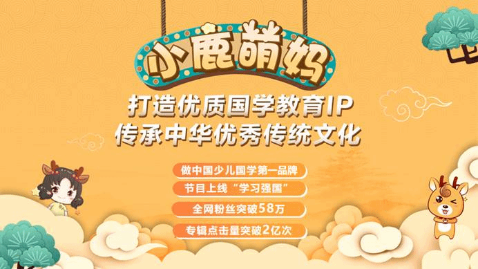 “小鹿萌妈”项目以中华优秀传统文化为内核,利用IP化的手段和互联网的传播方式,以国学教授及研究生为主要创作力量,融合国学与少儿优秀文学,针对3-12岁少儿,打造原创国学教育IP产品,产品品类覆盖有声书、纸质书、动漫等。“小鹿萌妈”致力于传播新时代具有中国精神与价值内核的国学故事,打造立足粤港澳大湾区、辐射全国乃至“一带一路”沿线国家的知名少儿国学IP品牌。