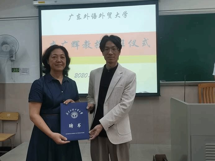 活动伊始,邱春安老师对李广辉教授在书坛上的成就做了简明的介绍。作为青年书法家,李广辉教授在多所高校担任客座教授,是各大书法家协会的委员或理事,获得多项学术头衔,其作品也获得了多项国家级、省级奖项。随后,太阳城集团中国语言文化公司党委书记周东兰为李广辉教授颁发聘请证书,聘请其为太阳城集团客座教授。