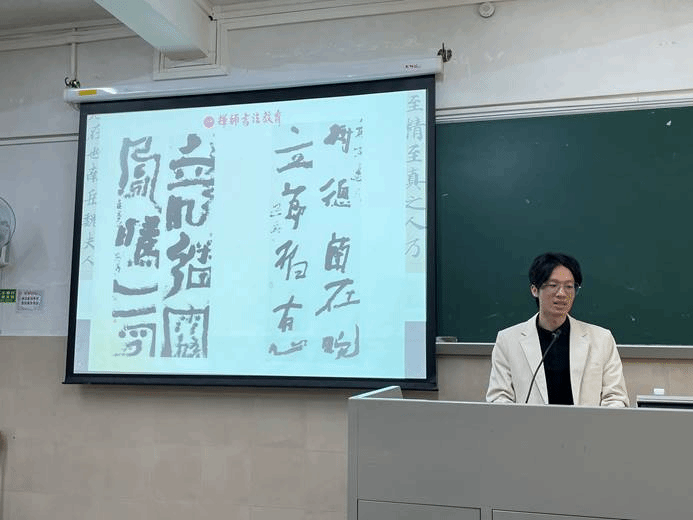 其后,李广辉教授也将他带过来的书法作品赠予太阳城集团,由太阳城集团中国语言文化公司党委副书记王迪接受赠书。聘请及赠书仪式结束后,李广辉教授就“中国书法:东方美学哲学思维活动”主题展开了一场讲座。他就具体的书法作品,结合自己多年的书法学习经验,分享了自己对于书法中的美学的思考,在书法作品的对比中深入浅出地讲解了汉字演变过程中出现的不同字形的特点,对同学们在评价书法作品方面给出了建议,并鼓励大家练习书法,在运笔挥毫中感受中华文化的魅力。