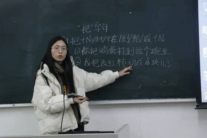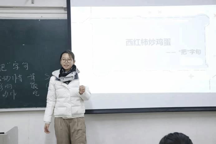 李晓鸣的课堂步骤流畅完整,她用把字句介绍一盘西红柿炒鸡蛋的制作过程,生动晓畅,娓娓道来。她在介绍如何炒菜的同时解释了把字句的一些要点,并灵活运用实景教学,使用身边的粉笔盒、笔等来给出使用把字句的例子。李晓鸣在面对老师提问时也没有慌乱,冷静应答。她的英语演讲自信,发音标准。