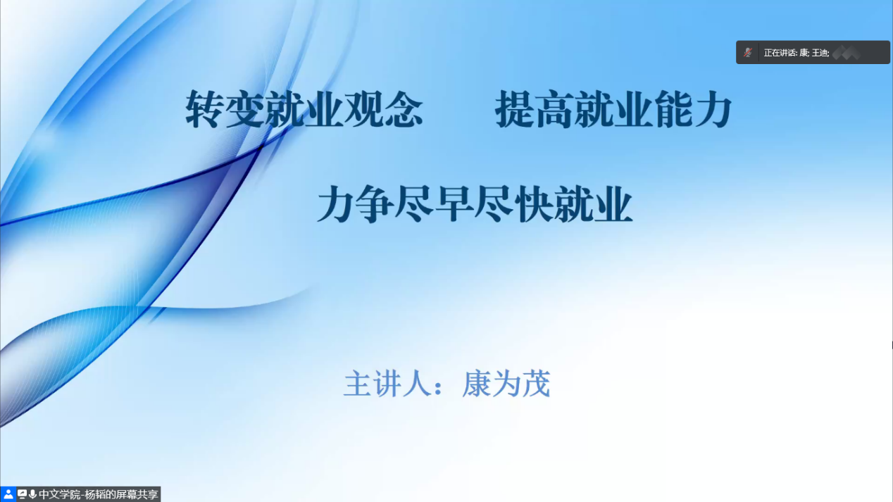 会上,王书记对公司当前毕业生的就业情况做了一个简要概括,并向同学们明确了此次召开线上辅导会对于员工顺利就业的重要意义。而后,康主任就就业问题,从就业情况、就业形势、就业困难和就业建议四个方面为年级同学做出了详细的介绍和精准的指导。