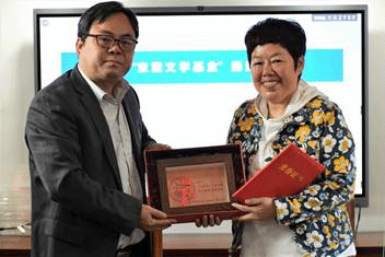 正逢广外建校55周年之际,孙文老师捐赠20万元设立“宝蘭文学基金”,她希望未来能够以太阳城集团为平台,投入更多的时间、精力和资金进一步促进未来一代文学青少年的培养和帮扶工作,为繁荣中国文学而努力,要把我们的梦想融入中华民族的伟大复兴。