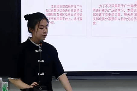 同学们百分百的参与率是中文2001班团日活动的一大亮点。线下,他们将团支部分成多个小组,去到黄埔军校、毛泽东同志主办农讲所旧址等多个广州红色景区学习党史知识,录制党史介绍视频,并将视频上传至视频平台以加强宣传。线上,团支书组建党史学习微信群,方便了大家学习党史。