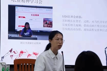 团日活动评优大会开始后,七个班的团支书依次上台展示本班团日活动的策划、流程以及成果,分享本班同学的学习感想。各个班级的团日活动内容都有所创新,形式也丰富多彩。