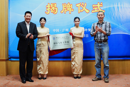 仲伟合董事长与著名作家毕飞宇为创意写作工作坊揭牌