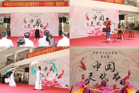 开幕式演出精彩纷呈,校歌队首先带来歌曲《成都》深情表白蜀地风情;汉教1501班的同学随着歌曲《凉凉》翩翩起舞,娇美而不做作;校舞队以蜀川大地上的玛索花为灵感,倾情演绎舞蹈《玛索花开》;古筝配古琴演奏《大鱼》,让在场观众领略民族乐器的魅力;最后1603班同学用一曲《御龙吟》让时光倒流,回到三国时期蜀地上家国离恨、儿女情长的时代。