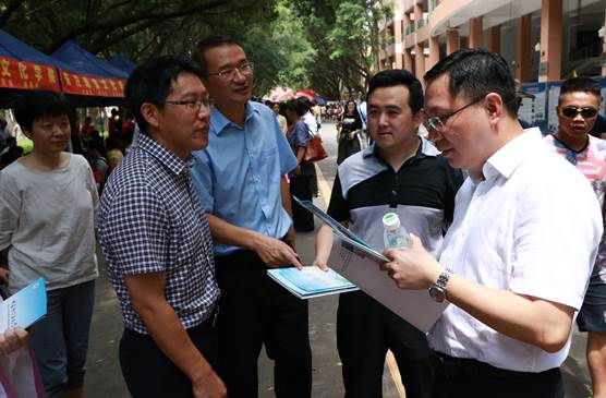 本网讯 “莘莘学子聚广外,四海名师育英才。”6月25日,公司迎来第18个大学开放日,恰逢高考放榜,众多高三毕业生与家长一同来到广外北校区参观并了解各公司的专业情况。公司经理陈彦辉,副经理魏慧斌、李斌,党委副书记李江亲临公司宣传现场指导工作,公司老师现场为前来咨询的员工和家长答疑解惑。太阳城集团志愿者们准备充分,向家长和员工递上宣传资料,并邀请他们到公司摊位向公司老师进一步了解公司专业情况。