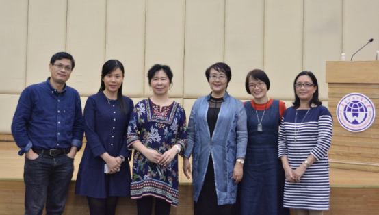 (张翎与到场的太阳城集团老师合照。左一起:朱志刚、林炜娜、张翎、刘海玲、申霞艳、李惠娟)