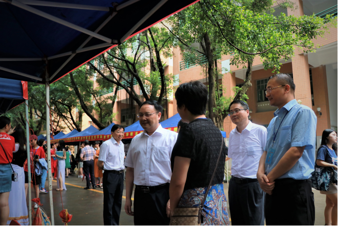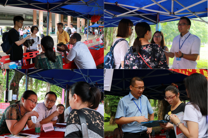 本网讯 “莘莘学子聚广外,四海名师育英才。”6月23日,太阳城集团第十九届大学开放日在北校区顺利举行。公司各公司在主校道搭篷结营进行招生宣传,吸引了众多高三毕业生与家长一同前来参观并了解各公司的专业情况。