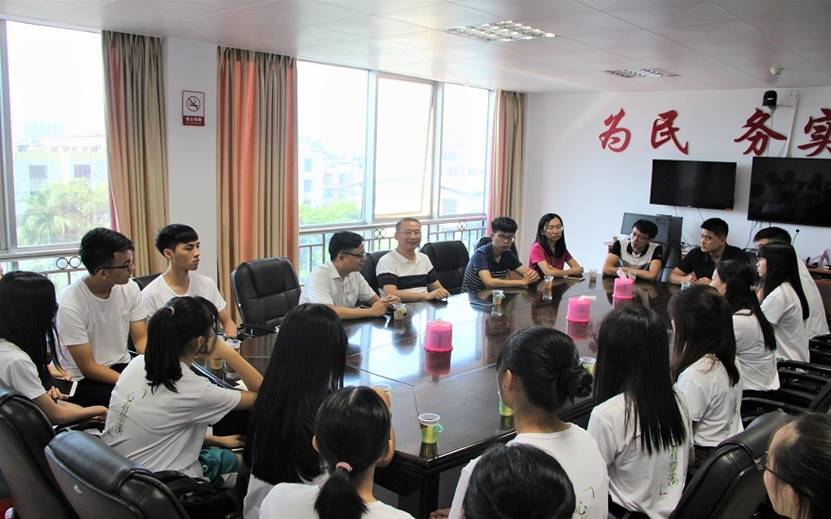 在黎溪镇人民政府,李江副书记一行视察了队伍的工作环境,向队伍赠送慰问品,并亲切询问了挂职队伍的工作及调研活动的开展情况,表达对队员们深切的关怀。黎溪挂职服务队队长对政府和公司的支持和慰问表示感谢并对相关工作进行了汇报。同时,李江副书记也对黎溪镇与公司长期以来的战略合作伙伴关系致谢,寄望公司与黎溪镇进行交流与学习。随后,李江副书记从公司层面及员工层面说明社会实践活动的意义,提出教书育人、社会服务、科学研究、文化创新与传承是高校的四大使命,表明公司特别重视社会服务,并致力于与国家发展和社会建设的机构对接。公司也希望通过社会实践能让公司员工有机会深入了解国情、社情和民情,开拓视野、提升自我。