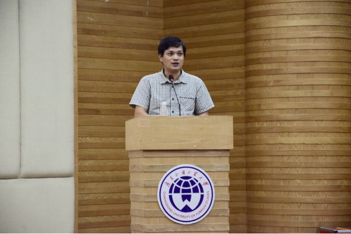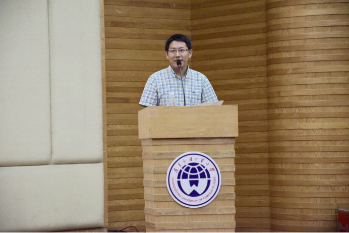 汉语言文学系主任朱志刚副教授则向新生解释了该系建立的初衷——设置与国际接轨的课程,以实现高校的差异化竞争,从而实现学科的弯道超车。接着,朱志刚从课程设置、团队力量与实践平台三方面,为在场学子系统而全面介绍了汉语言文学系。
