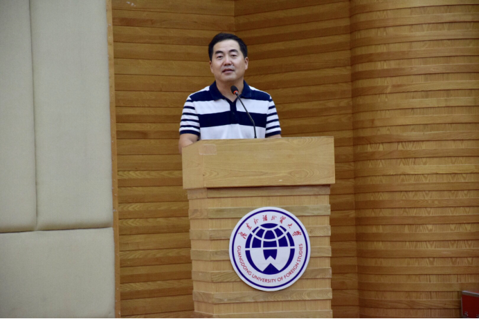 中国文化系主任王焱教授则从专业设置、讲座与实践、创意中心运营和实习基地等方面介绍了中国文化系。并寄语新生:“每个超越昨天的人都是超人,世上最可悲的不是失败,而是‘本可以’”,并祝愿在场学子都能拥有一段值得怀念一生的老员工活。