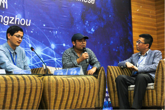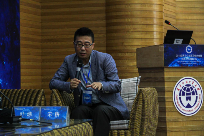 在简短的嘉宾与流程介绍后,宋耕最先发言。他介绍了香港大学开设创意写作专业的现状,并着重介绍了其特色的“驻校作家”计划。同时另辟蹊径,宋耕从擅长的中英翻译领域出发,指出了翻译与创意写作的关系:翻译也是一种再创造,可以作为创意写作的关注点和研究点。