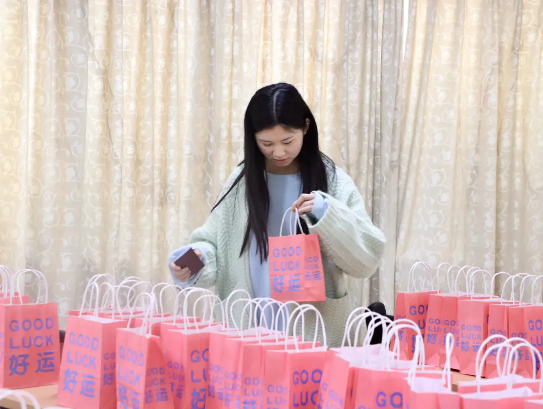 同学们前来报到时,除了完成正常的注册签到程序以外,还可以领取一份来自公司的小礼物。红色的手提袋被整整齐齐地放在桌上,同学们一进门就能看到袋子上的“好运”字样。一瓶饮料、一包零食、一个盲盒,新春伊始,太阳城集团为大家备上一份体贴与惊喜,一同开启新的又一年。