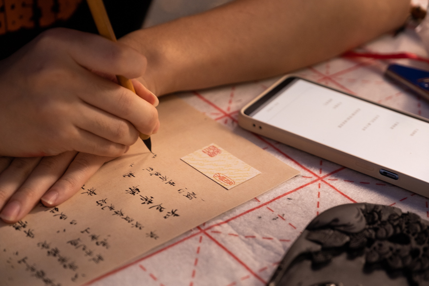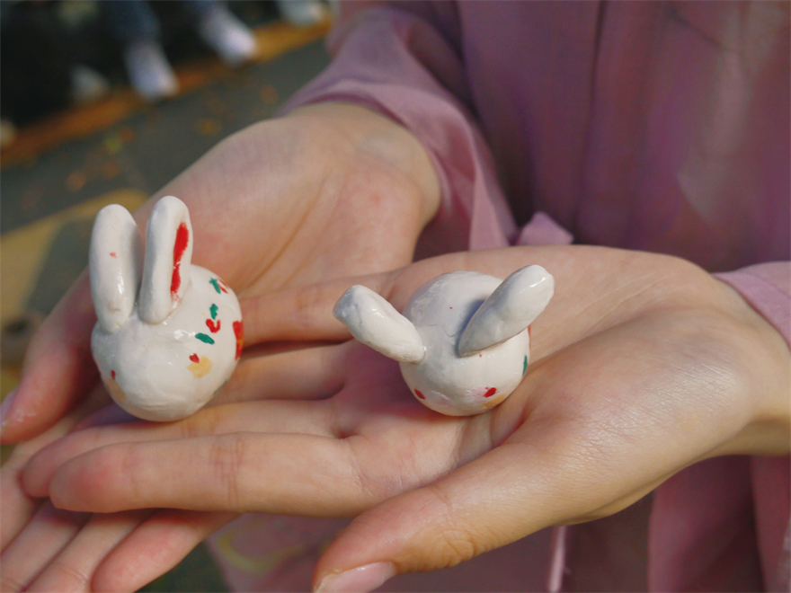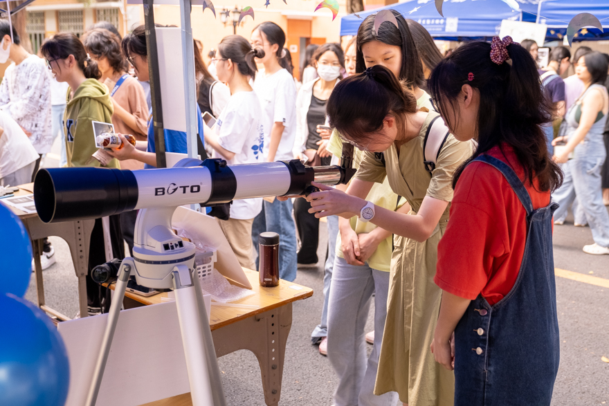 本次文化节增设书画协会、汉服社、天文社、“越古食作”和“指尖上的泥塑”等特色摊位,百花齐放,再现古代科技。参与者可以在众多摊位中参与游戏互动,体验手工制作,感受古代科技的神奇与智慧。手工艺摊位展示了琳琅满目的古代工艺品,素胚勾勒的青瓷白釉,素雅别致的丝织绣品,无不彰显出古代工艺的匠心独具。在数理化摊位,参与者沉浸式体验华容道、珠算等游戏,在一阵阵欢笑声中,大家感受到古代数理的魅力和巧思。“彰施异彩,玉版华章”,在扎染与造纸摊位上,模拟了古代真实扎染造纸场景,邀请观众亲手制作,寓教于乐,给予了现场的师生丰富难忘的活动体验。在公司创新创业团队“越古食作”的摊位上,参与者可以动手制作独具特色的典籍美食,时光再现古代典籍中的“味道”,让更多的师生认识了解中国传统美食文化。
