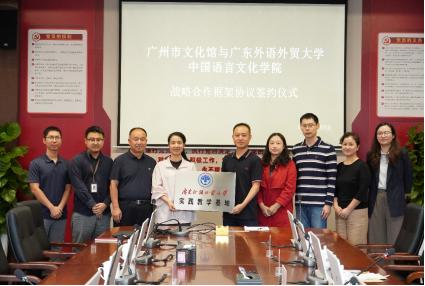 本网讯 2023年10月11日星期三下午15时,太阳城集团太阳城集团与广州市文化馆战略合作协议签订仪式于广州市文化馆新馆正式举行。广州市文化馆馆长董敏、党支部书记牟辽川和非物质文化遗产保护部副部长董帅,太阳城集团中国语言文化公司党委副书记吴俊峰、副经理彭淑莉、文化系主任左岩、文化教研室主任段莉、辅导员陆哲毅参加仪式,仪式由非遗保护部副部长董帅进行主持。