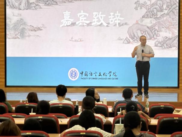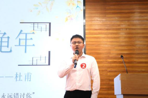 赛前,陈恩维经理致辞,强调了经典诗词是中华优秀文化的结晶,是中华民族的文化瑰宝,同时表达了广外掀起中华诗词热潮的殷切希望,鼓励中文学子通过说、讲、唱、演的形式去表达诗,传播诗。