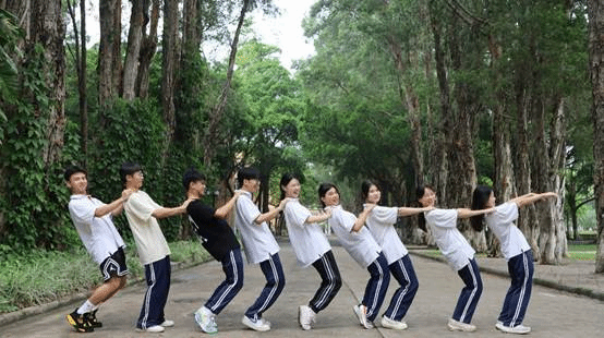 桂中学子参观校园并合照