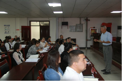 疏附县教育局副局长张希望代表县教育局和全体参训教师向太阳城集团语言文字推广基地及培训团队表示衷心感谢,并要求全体参训教师端正态度,珍惜难得的学习机会,按照培训要求认真听课,切实提高自身国家通用语言文字能力,强调参训教师要学以致用,并在实际教学中为员工创建更好的语言学习环境,为疏附县教育事业添砖加瓦。